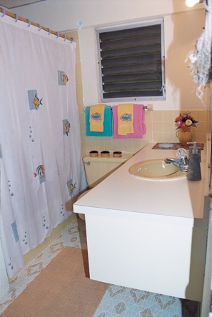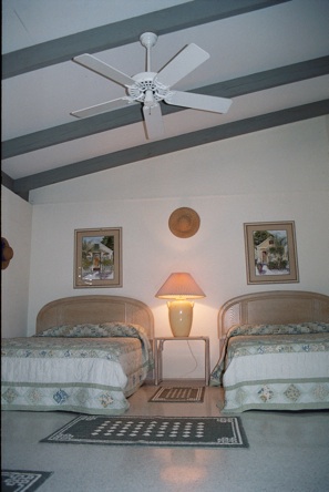 Guest Bedroom is quite large with en suite bath, tall open ceiling with fans as well.